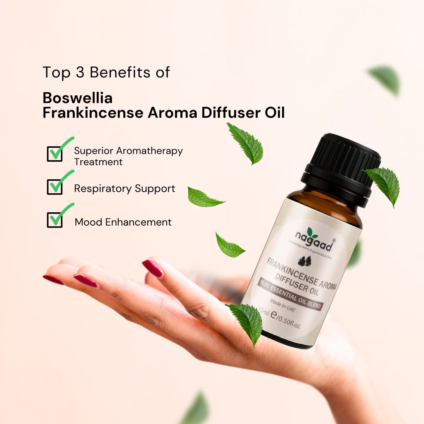 Frankincense Aroma Diffuser Oil is extracted from the resin of wild Boswellia trees, offering a naturally grounding scent perfect for relaxation and mindfulness. Sustainably harvested through a collaboration between Nagaad Resins and local communities in Eastern Africa.