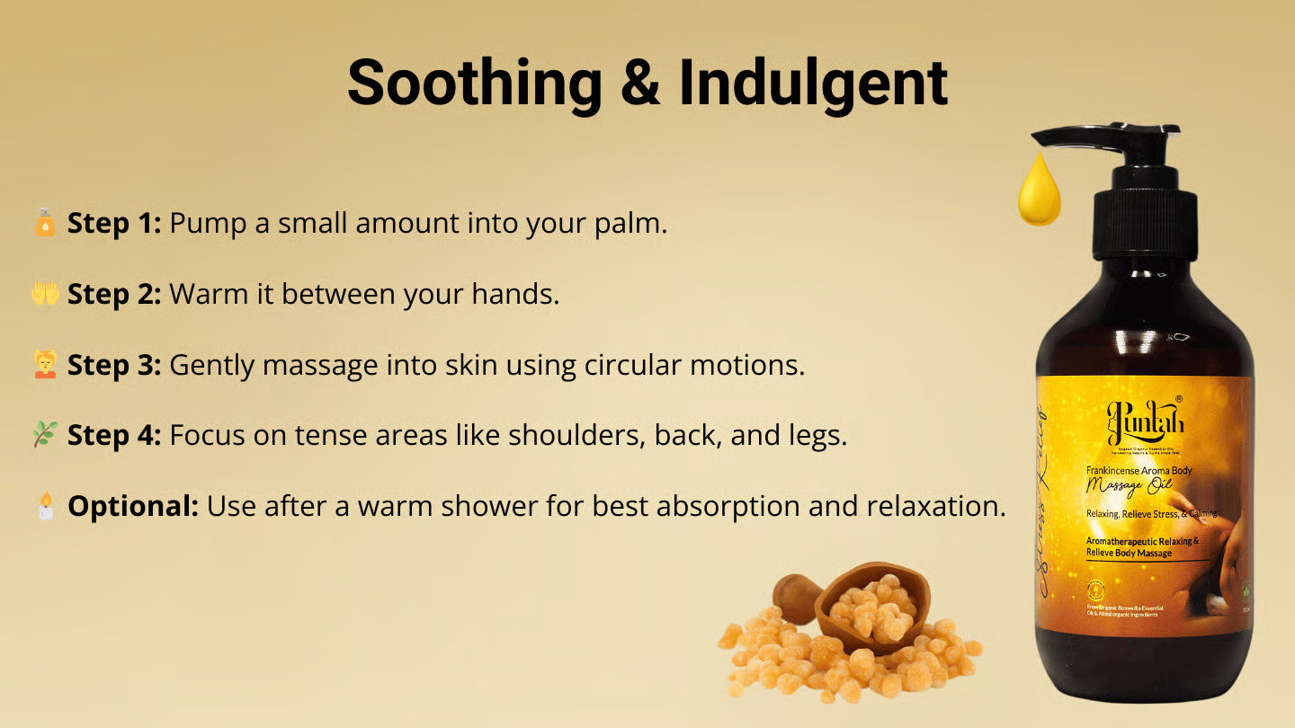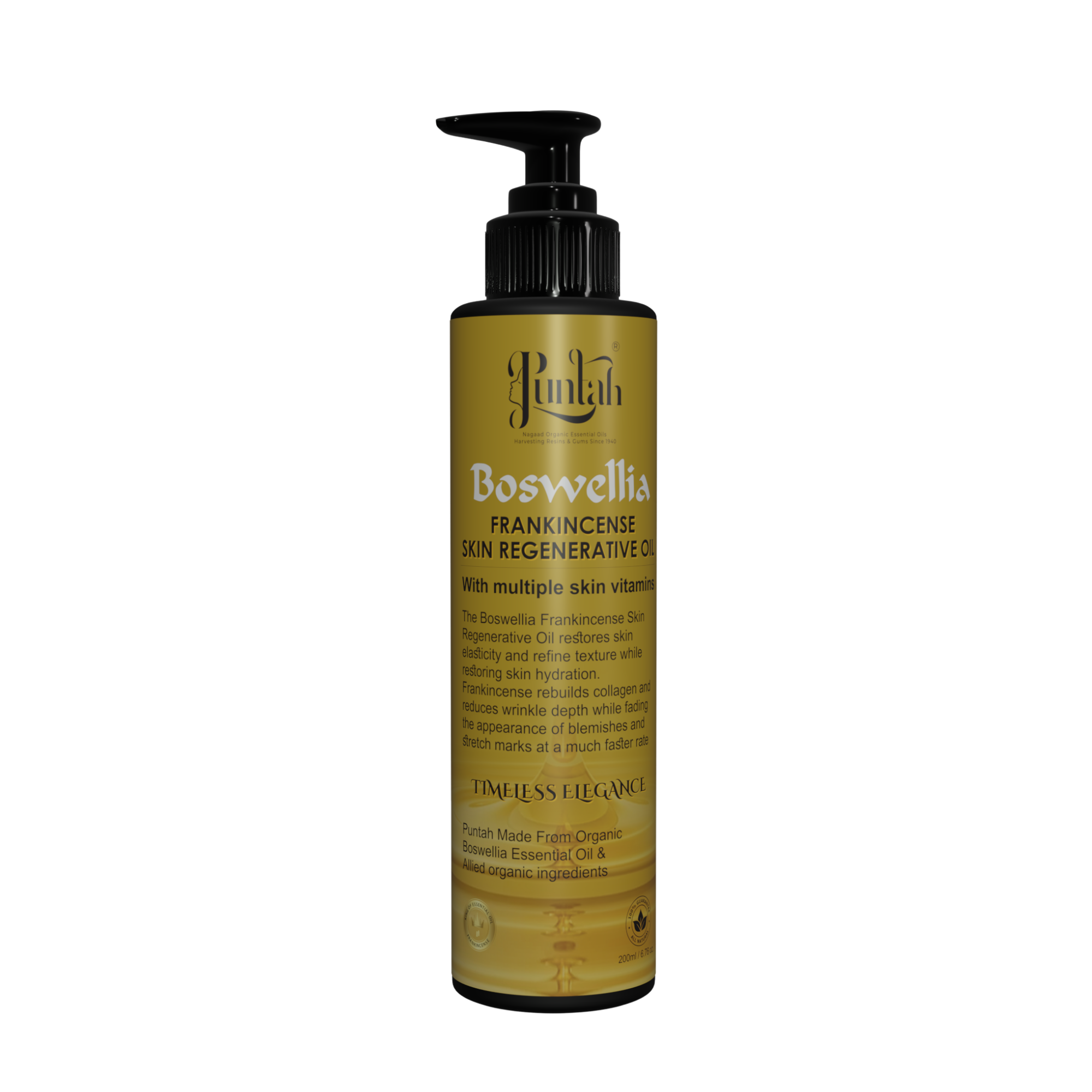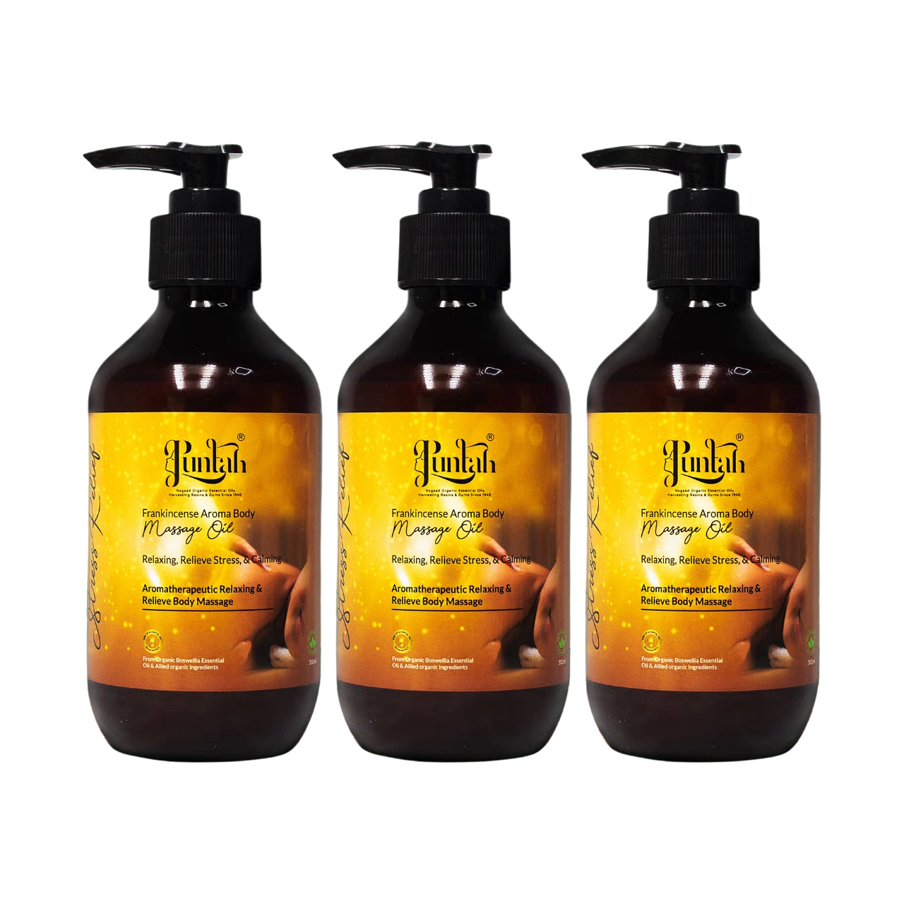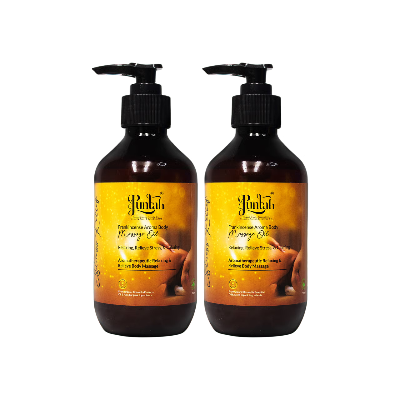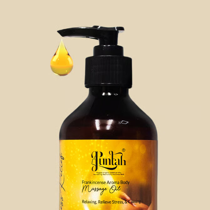 The Puntah Frankincense Aroma Body Massage Oil is a light, vitamin-rich blend made from rare Boswellia tree extracts.