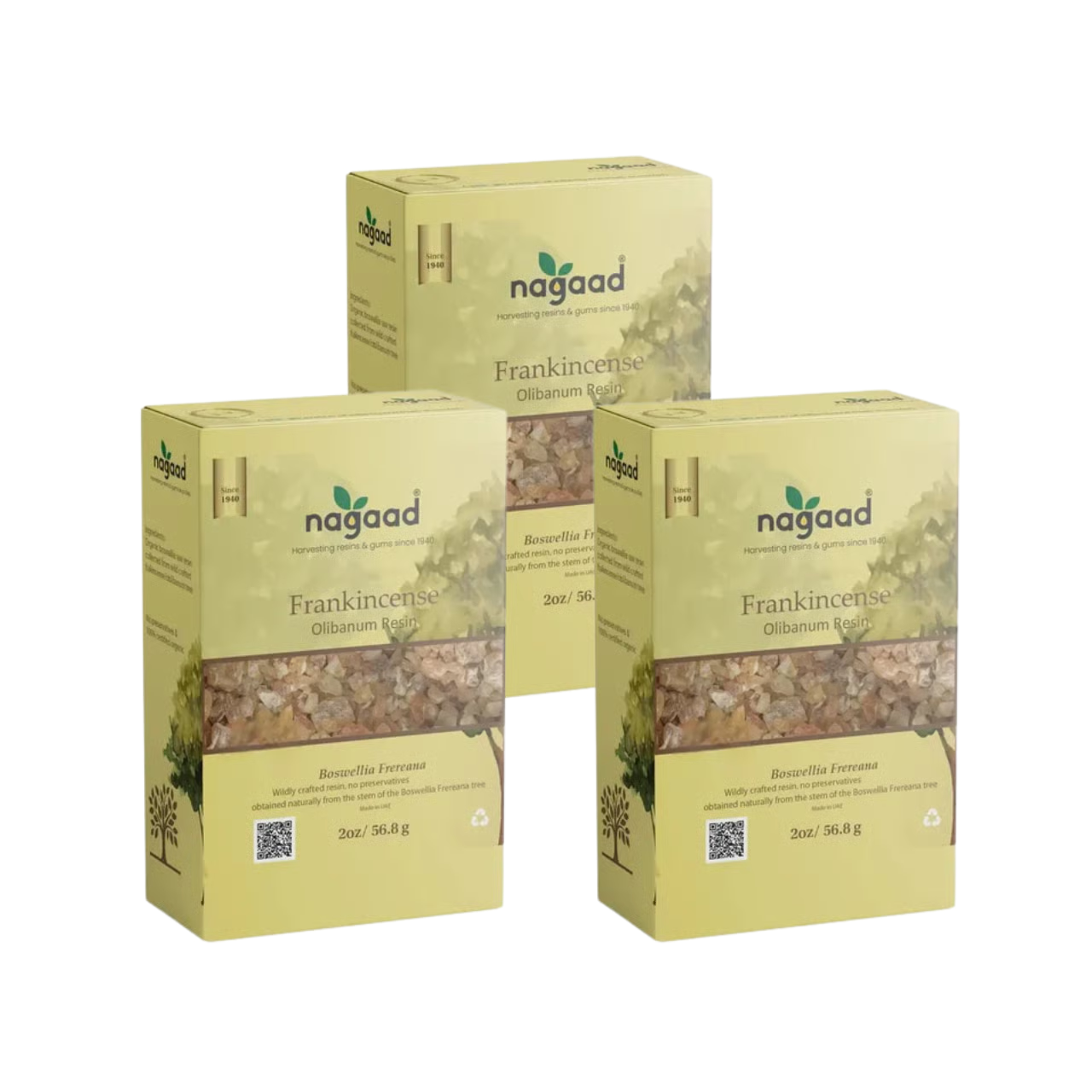 Box of Nagaad Frankincense Olibanum Resin, 2oz, with product details.
